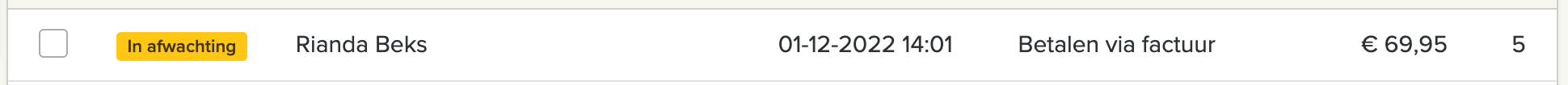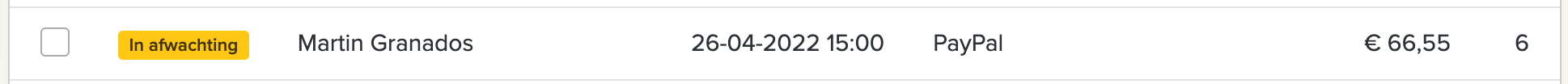 De online betalingen met Mollie, Stripe en PayPal verlopen automatisch. Als de status op In afwachting staat, betekent dit dat de betaling nog niet is verwerkt. Na ontvangst wordt de status van de bestelling automatisch gewijzigd in Betaald.