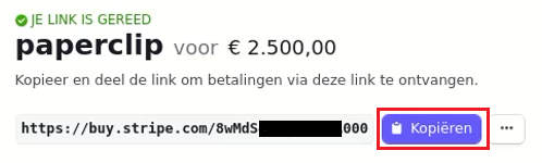 Je kan nu de link voor het aangemaakte product kopiëren.