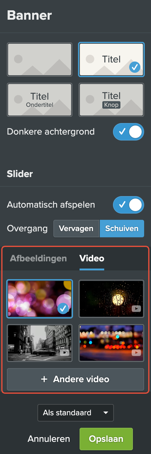 Klik op Opslaan. Je hebt nu een video in de banner van je website geplaatst.